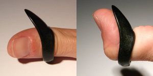 also ich benutze vom Boden aus einen Daumenring und vom Pferd aus, wo es einfach schneller gehen muss den Japanischen Handschuh. Hier benutze ich eh einen Bogen der nicht ganz s das Zuggewicht hat wie der vom Boden aus und daher geht das ganz gut.