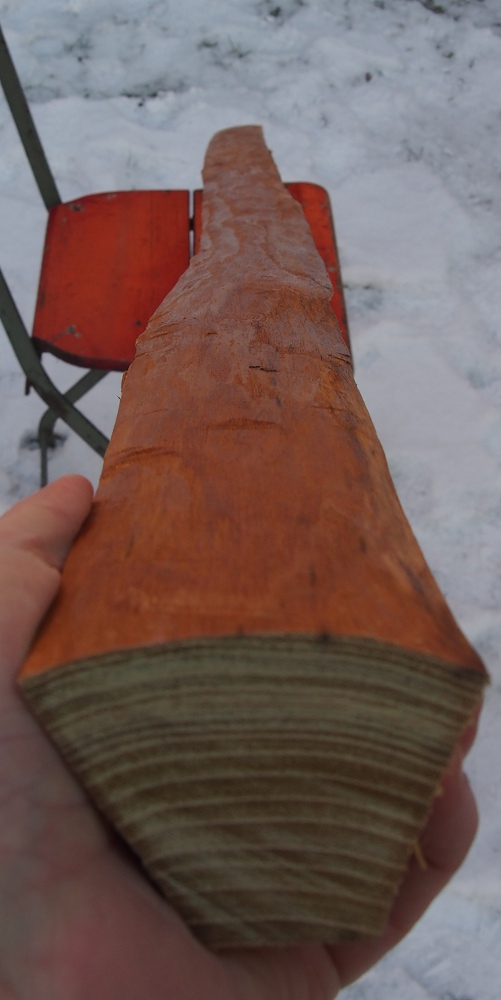 Dritte Variante Nr.3! Liegt auch weiter innen - somit weniger Spätholzanteil - aber es bleiben noch 4cm für den Griff!