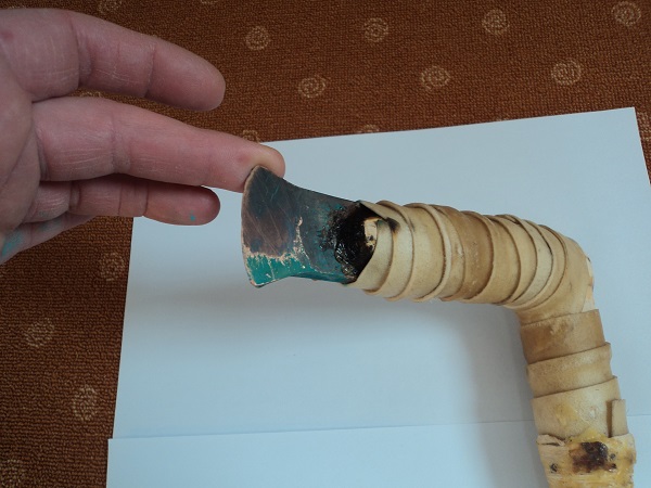 Auch fehlt die Bogensehne, die bei prähistorischen Bögen üblicherweise an einem Ende mit einer Schlaufe, und am anderen durch eine Umwicklung befestigt war.