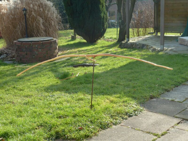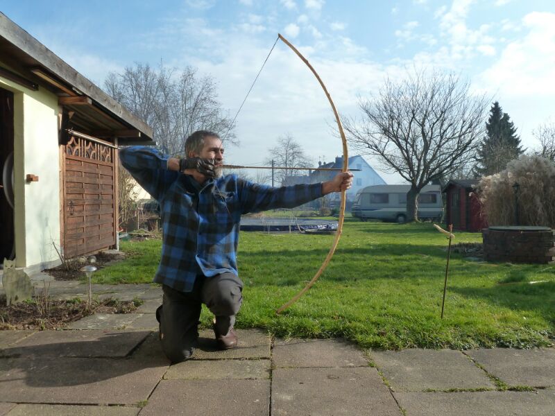 Er lässt sich stramm ziehen und da der Griff schräg zur Sehne liegt, habe ich fast ein Centershot.