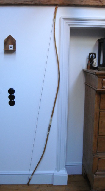 Anbinden der Sehne ist also eher ein Sichern gegen Umschlagen - gerade während man am Bogen herumbiegt und korrigiert z.B. - eher als eine Korrekturmaßnahme in sich. Höchstens eben wenn der Abstand oben etwas gross ist und man will ganz sachte dagegen halten... oder ich mach' das ab und zu wenn ich ein Korrekturholz an den Bogen spanne damit er oben nicht zu sehr mit dreht...