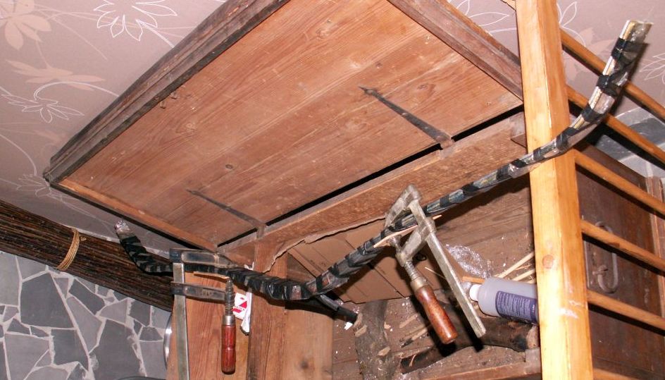 Das kenn ich gut, das Bild. Da platzt das Bauchlaminat vom Griff und nimmt noch was mit. Hat sich der Griff noch mitgebogen? Der muss ganz steif sein.
