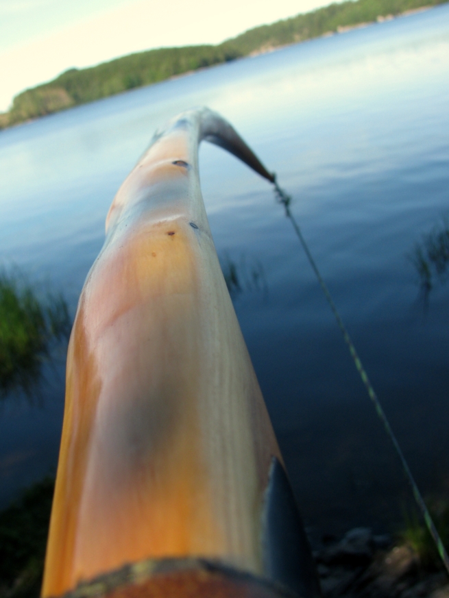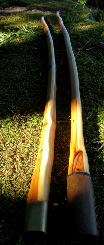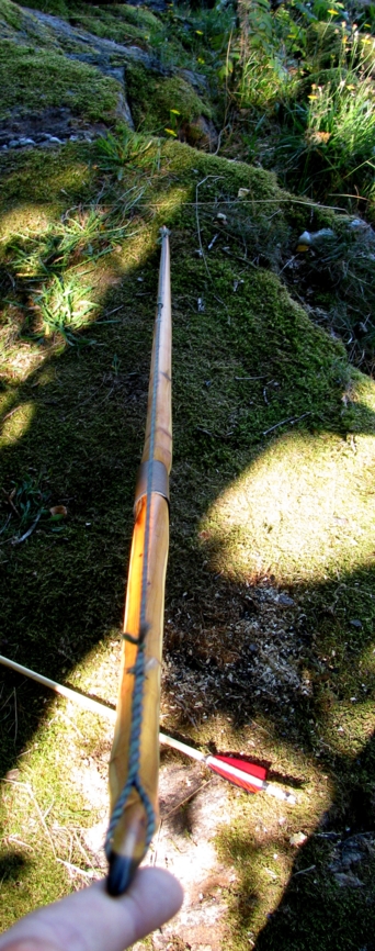 Entstanden aus einem kurzen, verästelten aber feinringigen Eibe-Stämmchen aus dem ich die besten Stücke mühsam herausgeschnitten hab. Die Take-Down-Hülse hab ich mir passend dazu bestellt. Ich wollte gerne was kleines handliches, einen Reisebogen. Hatte nun im Schwedenurlaub endlich Gelegenheit zum Einschießen. Wirft subjektiv sehr gut, Die Eibe federt geschmeidig und ich liebe einfach das Burgunderdesign. Der charakteristische Setback im Griff fehlt bei diesem Bogen natürlich, macht aber nichts.