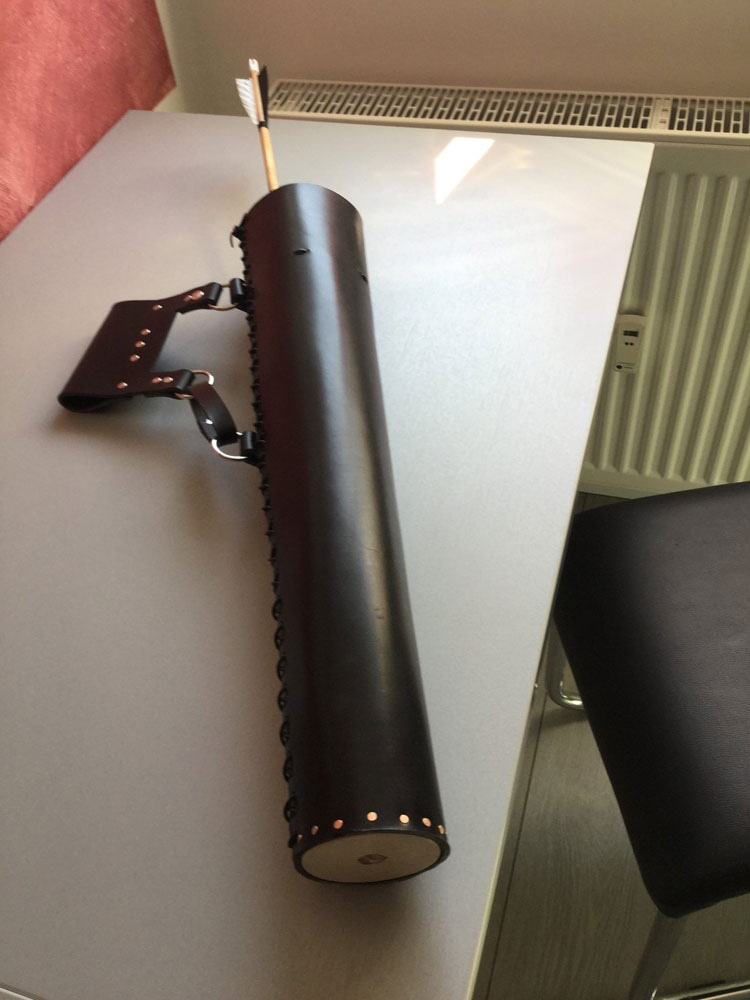 hier mein erster selbstgemachte Seitenköcher aus 3mm Leder in Schwarz