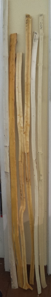 Bisher verwendete Werkzeuge: kleine Taschensäge, Pfeil-Ziehmesser, Ziehklinge, Bandsäge(nur beim Apfelstave eingesetzt).