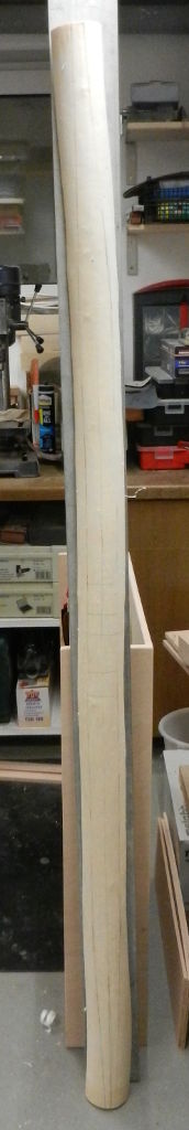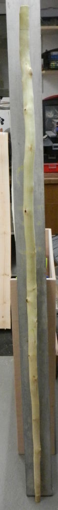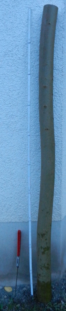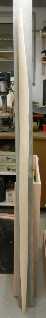 Am Donnerstag wurde die Esche weiterbearbeitet. Die Länge ist jetzt 176cm und die Breite liegt bei 4,7cm. Das Gewicht: 1139 g bei 18% Feuchtigkeit. Viel zuviel Masse, biegt sich auch nicht ansatzweise. Von Donnerstag bis Freitag hat sie 57g Wasser verloren.