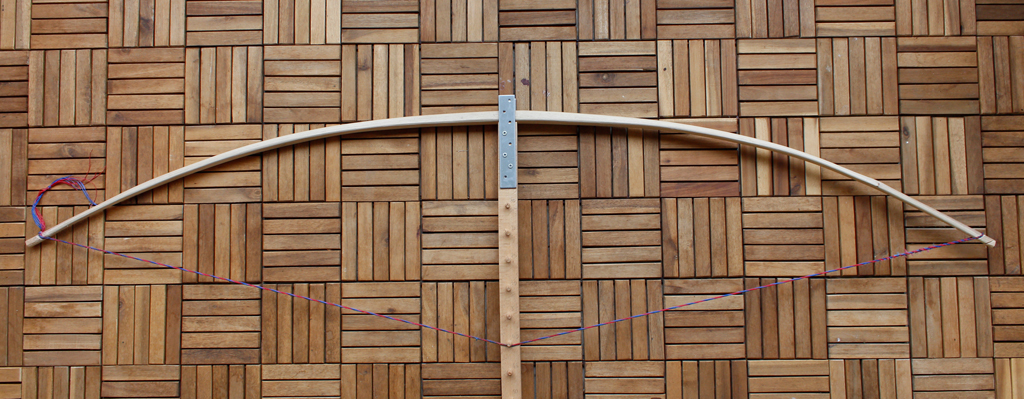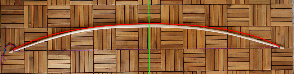 Mein grober Orientierungsfaden war die Anleitung für den Bau eines Eibe-ELB '6footer' von Blacky. Dabei hat sich zum einen herausgestellt, dass Hickory die Bezeichnung Hartholz durchaus verdient hat (Bearbeitung mit Ziehmesser und Schweifhobel) und dass mit Hickory bei den Maßen von Blackys Eibenbogen ein Knüppel entsteht, welcher einen Hirsch vielleicht erschlagen aber sicher nicht erschießen kann (zumindest nicht mit der bei mir vorhandenen Schultermuskulatur). Somit wurde der Bogen weiter ausgedünnt und hat jetzt einen eher flachen Querschnitt bekommen. Mittlerweile sitze ich eine geraume Weile am Tillern und hier würde ich jetzt die Fachleute des Forums um kleine Hilfen bitten!