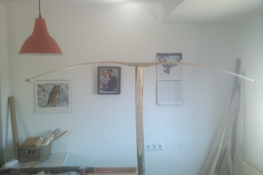 Ich möchte den aktuellen Stand des Bogens an dem ich arbeite mal vorzeigen, um mir eure Kommentare dazu anzuhören. Ich habe leider bloß die Kamera meines Handys, daher sind die Bilder nicht besonders gut.