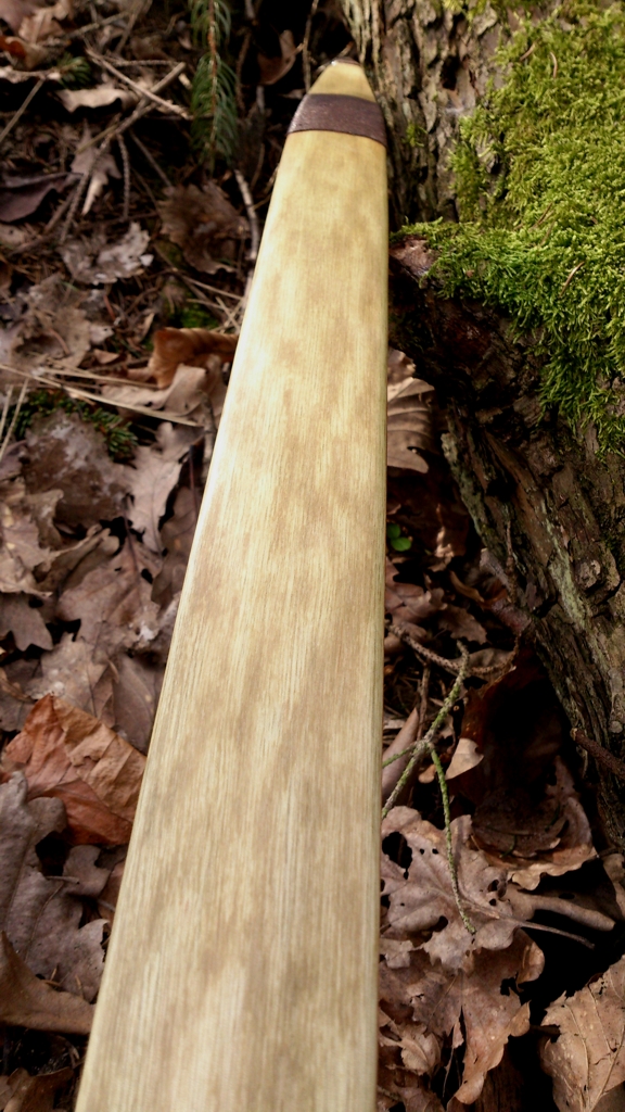 Hier das Ergebnis mit dem ich nicht zufrieden bin, das aber weniger schlecht geworden ist als zwischenzeitlich gedacht. Mit der Performance des Bogens bin ich allerdings zufrieden und das Ganze werde ich auf jeden Fall mit Osage Orange nochmal bauen, logischerweise mit an Osage angepassten Dimensionen.