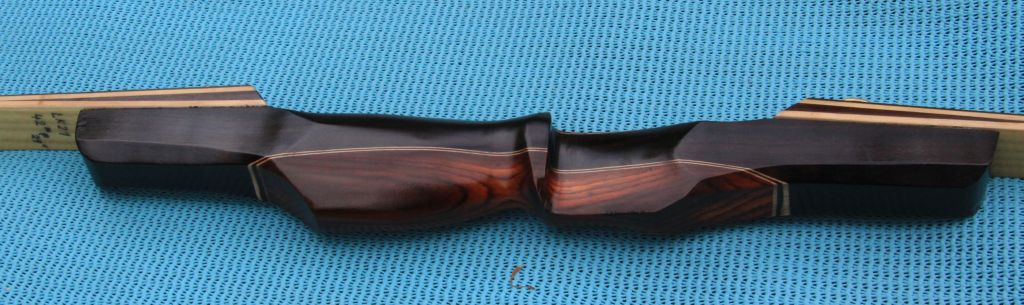 das mit dem Griffstück war so eine Sache. Ich hatte das Gefühl, dass das markante Holz auch irgendwie eine Kante brauchte. Bei zuviel Rundung hatte ich Angst, dass er zu eintönig aussieht und wieder draufhobeln geht schlecht. Beim nächsten Griff für einen Recurve wird wieder etwas experimentiert und da habe ich mir vom Tischler gestern erst mal ein paar Ahorn Riegel geholt, die kann ich dann formen und zur Not auch vermurksen, da tut es nicht so weh wie bei einem guten Holz.