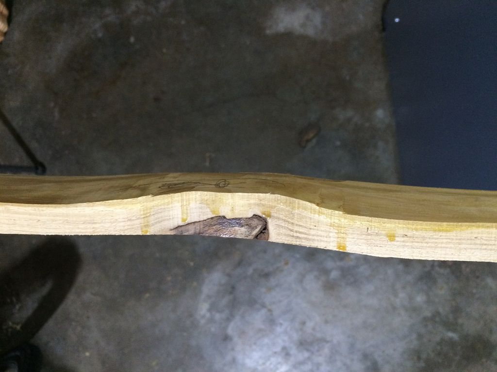Nun habe ich noch einen Robinien-Stave, aus dem ich einen weiteren Flatbow machen möchte mit 40-45 Pfund Zuggewicht @ 28" und nicht-biegendem Griff.