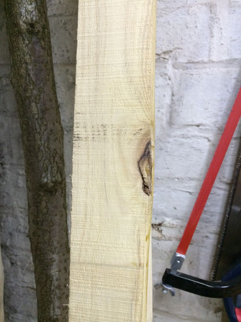 - Im letzten Drittel eines Wurfarms (auf dem Foto der untere WA) ist eine Aststelle, die eine Wölbung verursacht
