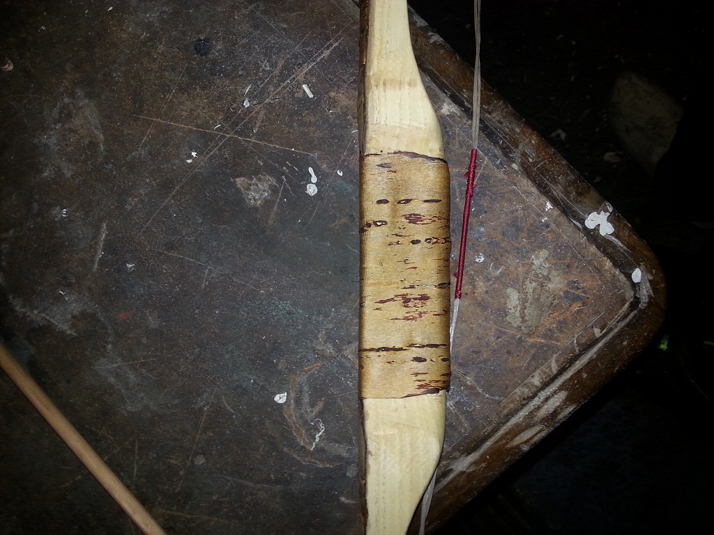 Backing: 4 Hirschsehnen, Darüber ist Kirschrinde zum Schutz