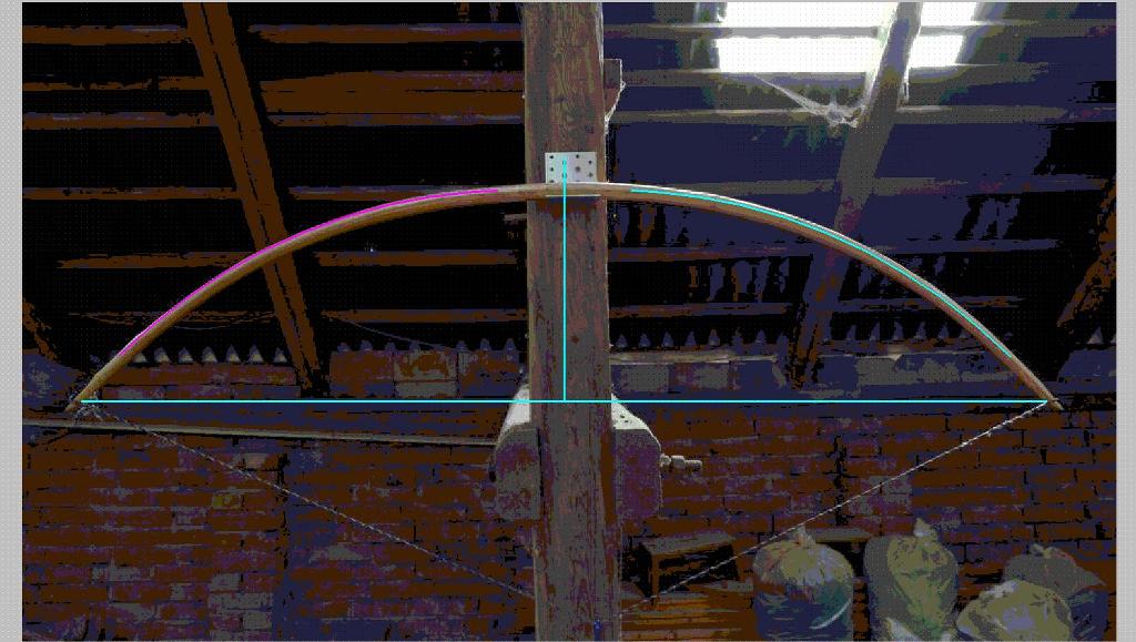 Wenn rechts der obere Wurfarm ist dürfte er gleichmässig über die ganze Länge einen Ticken mehr biegen. So, dass auf Standhöhe der Sehnenabstand in der Mitte vom Wurfarm, oben ein bisschen grösser ist.