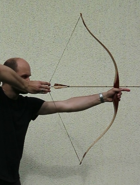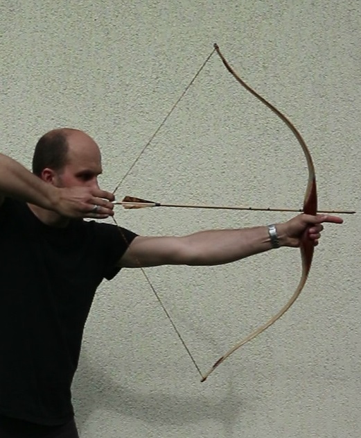 Dann bin ich dazu übergegangen mit der Daumenwurzel am Jochbein zu ankern und einfach gerade über den Pfeil zu zielen.