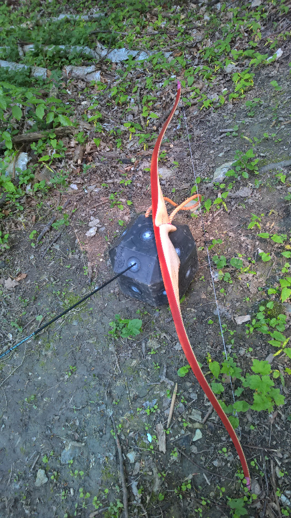 Sehne:9-Strang Dacron (weiß noch nicht ob ich meinen Leimkünsten so weit vertraue da was dünnes aus Spectra drauf zu schießen)