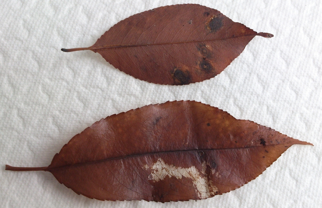 @Inge: Auf die Blattform traue ich mich da nicht verlassen. Nach den Fotos auf baumkunde.de wuerde ich deine als Prunus serotina sortieren. Meine hier sind deutlich runder.