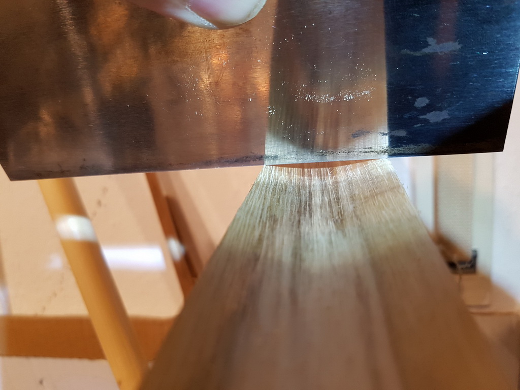 Dabei ist mir aufgefallen, dass der Rücken im äußeren Drittel deutlich konkav ist. Was meint ihr, kann man das einfach ingnorieren, oder ist es besser das zu begradigen (Geht aber wohl nicht ohne die Jahresringe zu durchtrennen)?