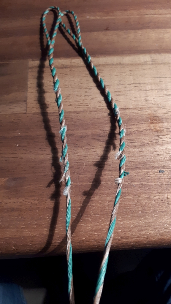 Da die Sehne zu lang ist kannst Du den Spleiss auch wieder öffnen und sie kürzer machen, dann ist das Material nicht verloren.