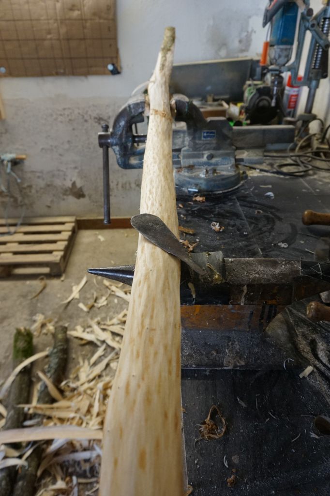 Den Rest wurde mit einem Zugmesser erledigt. Die Rinde wurde mit der Spachtel entfernt, danach kam auch dieser Sap ins Zwanskorsett