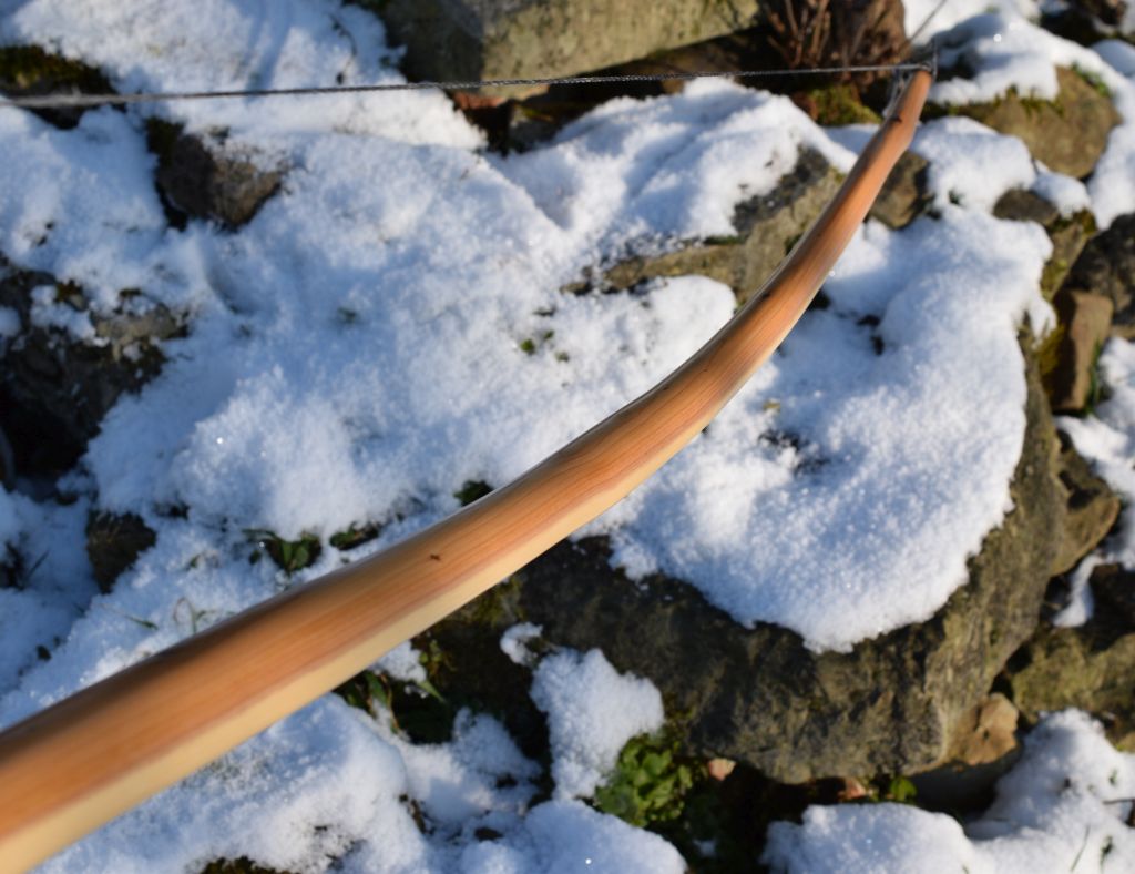 ich will auch mal wieder was zeigen. Ich hab zwar doch einiges in letzter Zeit gebaut, das war aber fast immer für andere und meist schon weg, bevor ich Fotos machen konnte. In der Uni is auch viel zu tun, deswegen kam dieses Jahr leider auch das Sap-Turnier zu kurz (Schande über mich, aber nächstes Jahr bestimmt). Der neue Besitzer hat sich nen ELB mit ca. 50lbs@29" gewünscht, ich bin jetzt bei 53lbs gelandet. Der Bogen macht im oberen WA ne leichte deflexe Welle, die Stelle habe ich steifer gelassen, sie biegt kaum mit.
