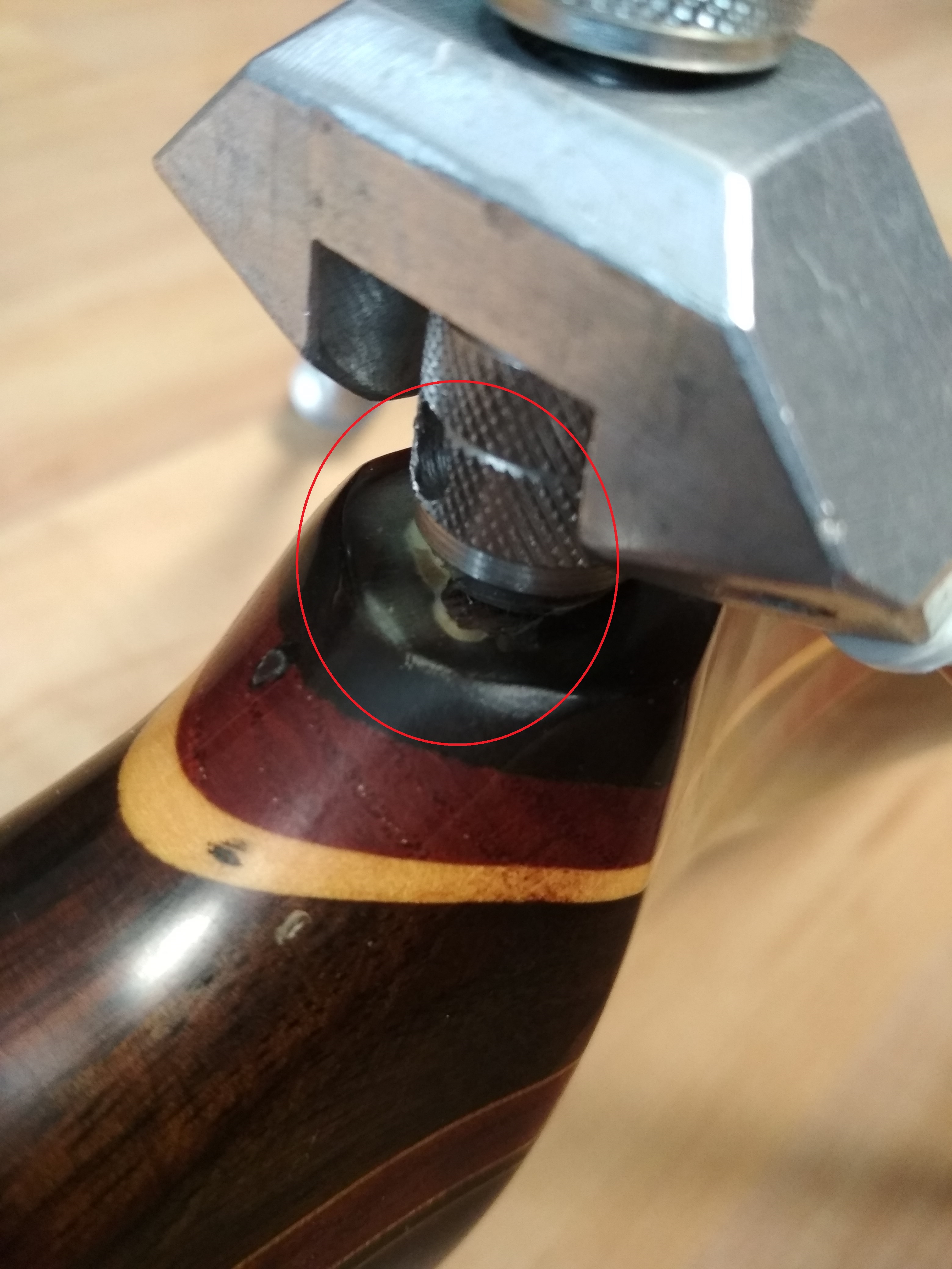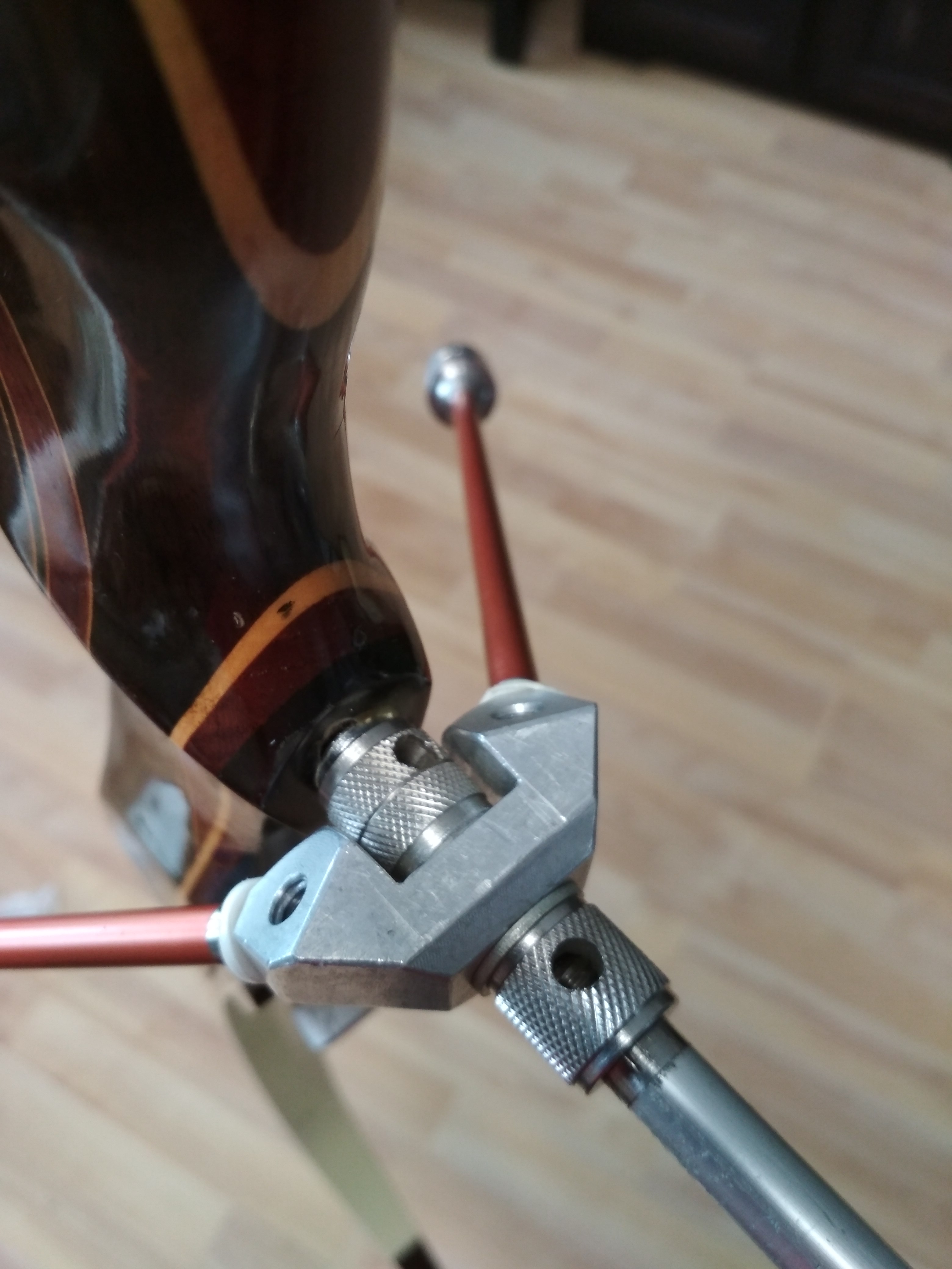 Das Gewinde des Silbernen Stabis eiert beim hereinschrauben in den Bogen leider deutlich, jedoch lässt er sich noch ohne Probleme montieren.