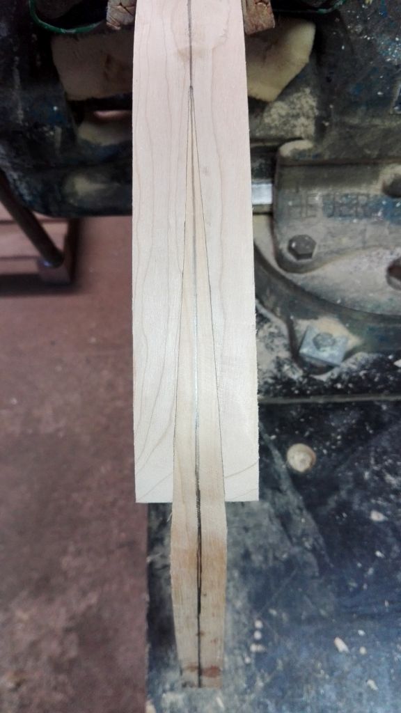 Heute waren die Siyahras mit ihren Spleißen dran.Zuerst wird die Spitze vom dem Spleiß aufgezeichnet und danach mit der Bandsäge ausgeschnitten.Nun können sie plangeschliffen werden und mit hilfen von Klemmen werden sie auf ihre Postion gebracht. Mit einem Bleistift werden die Konturen aufgezeichnet und innen an der Linie vorbei mit der Bandsäge ausgeschnitten.