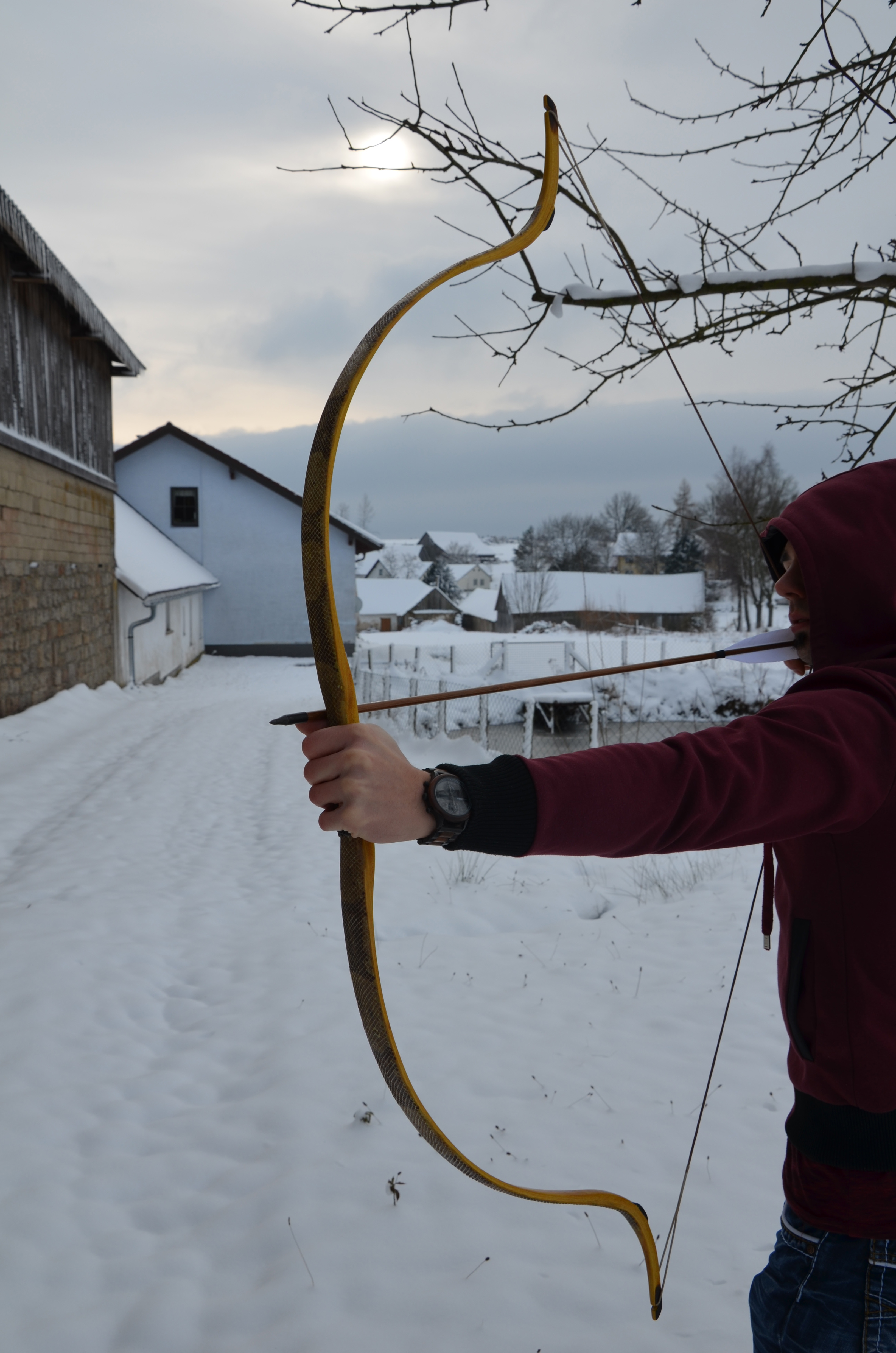 Den Bogen hab ich gebaut um das Schießen mit dem Daumenring lernen zu können.
