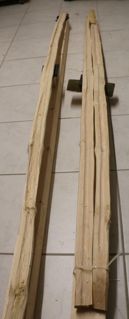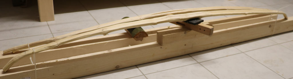 Außerdem gibt es jetzt zwei Hilf- Werkzeuge die mir beim Tillern helfen sollen. Heute wurde an einem der Halbstämme ein Recurve reingedämpft. Der Recurve auf der anderen Seite