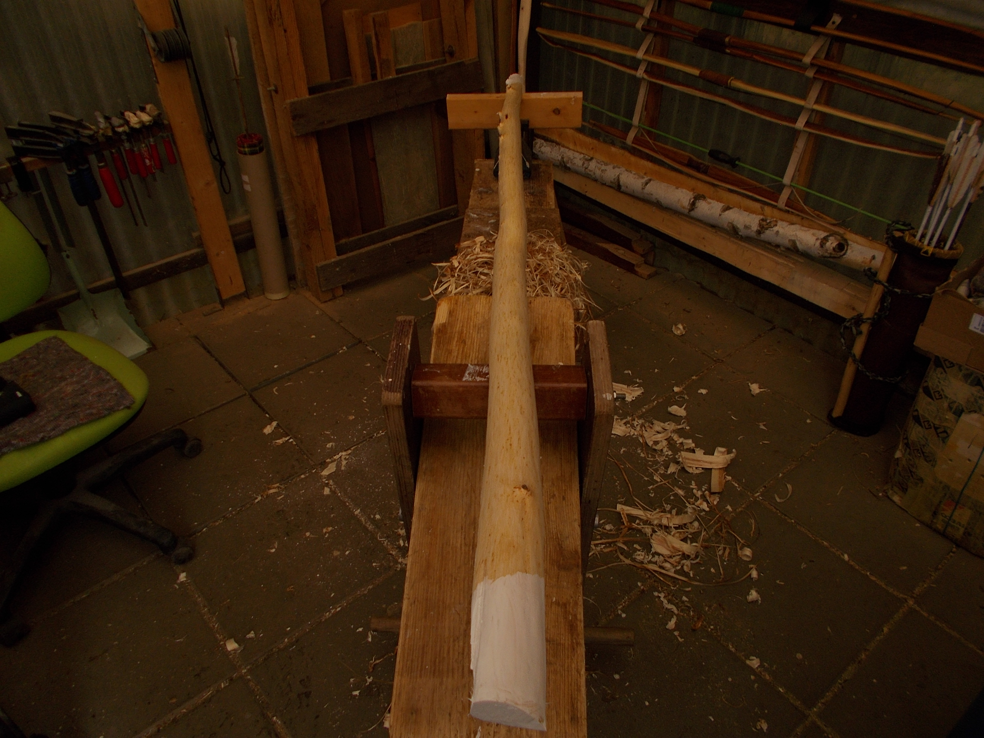 schon fertig ist. Zum Einsatz kamen Zieheisen, Schnur, Stift, Taschenmesser und Küchenwaage. Der Stave liegt jetzt in meiner Werkstatt bei Außentemperaturen, hab ihn auch nicht irgendwo aufgespannt, ich werde