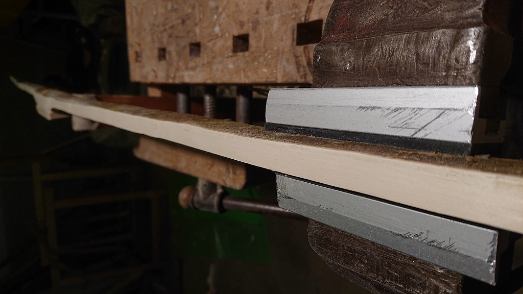 Gebrauchte Werkzeuge: Ziehmesser, Schweifhobel, Raspel, Schnur, Leimklemmen, Bleistift