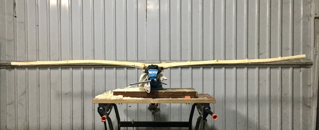 Ich werde ihn jetzt dann grob in Form bringen, dann kommt er ins mäßig beheizte Arbeitszimmer und ich fang mi der Wiegerei an. Ich hatte beim SAP 2018 einen Ahorn gebaut, da gabs keinerlei Probleme mit der Trocknerei. Der Bogen schießt immer noch, keinerlei Stauchrisse etc..