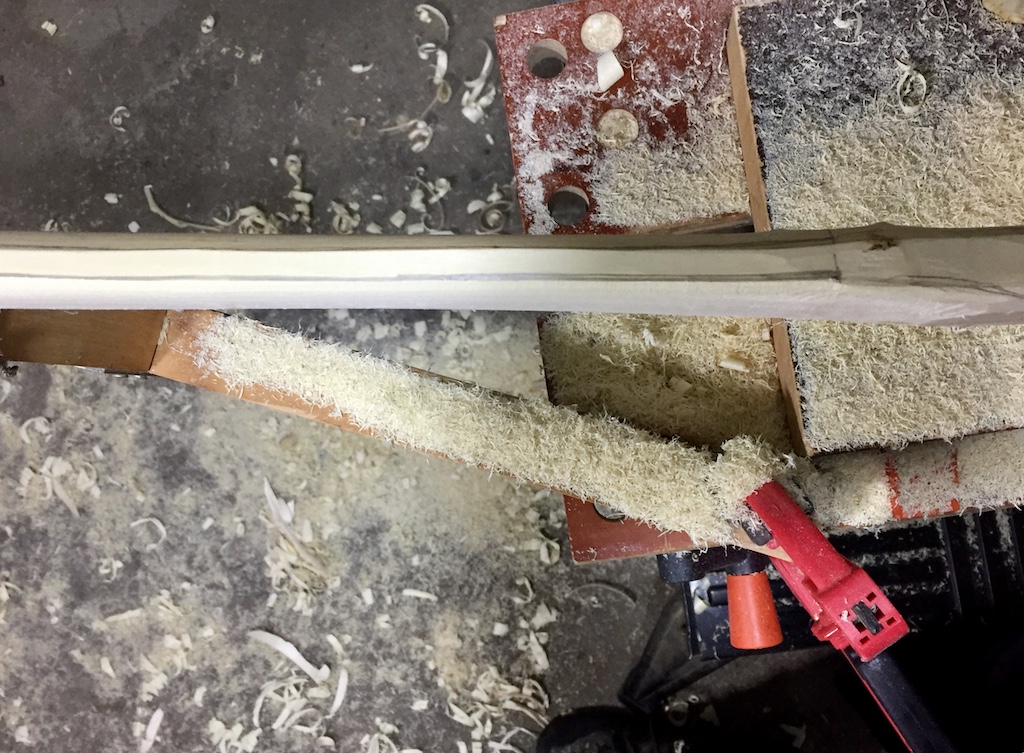 Der Ahorn ist jetzt mit dem Ziehmesser grob in Form gebracht worden.