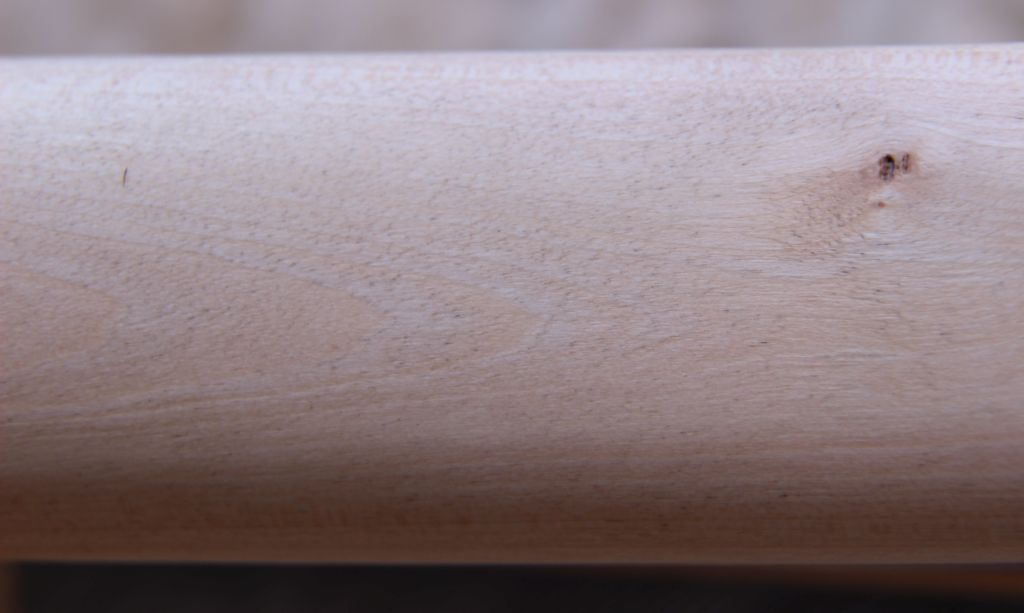 Das Stämmchen hatte etwa 7 cm Durchmesser. Die äußeren Jahrringe haben rund 3 mm Stärke. Zum Markkanal hin sind sie dünner. Eine leichte Korrektur seitlicher Abweichung der Sehnenlage war im Griffbereich mit Dampf möglich. Er hat einige leicht reflexe und deflexe Stellen sowie Wellen. Aber nichts, was von weitem gleich ins Auge sticht.