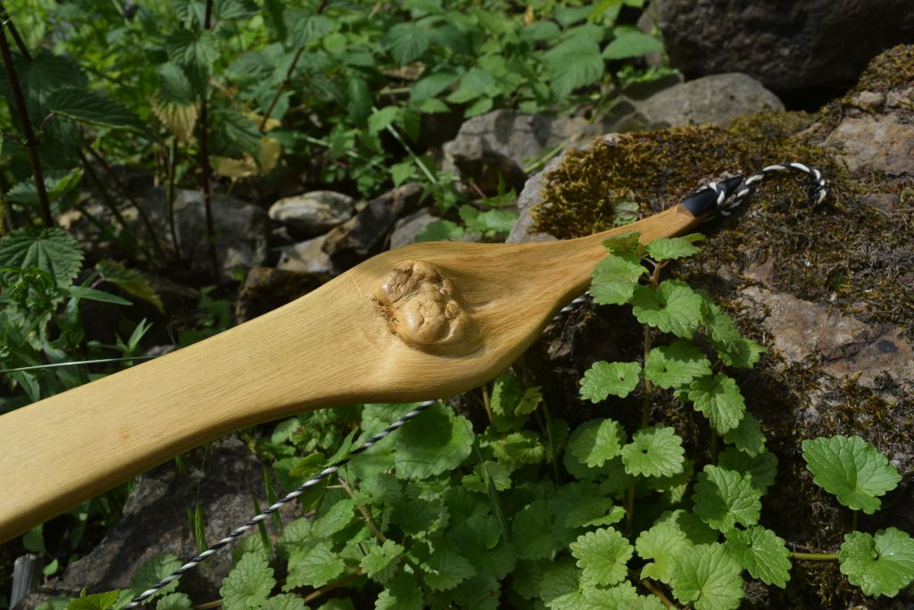 lange nix gezeigt. Streng genommen ist der Bogen gar nicht von mir, sondern von einem Teilnehmer meiner Kurse. Ich bin ausnahmsweise mal dazu gekommen, einen so entstandenen Bogen abzulichten, wenn auch schnell schnell - die Fotos sind deshalb nur wenige und auch nicht optimal (den Tiller habe ich nicht gut von der Seite erwischt). Fand das Teil aber ganz abgefahren mit den integrierten Ästen, dass ich es mal zeige. Aufgrund der hohen Masse am Ende hat der Bogen leichten Handschock, es ist aber sehr erträglich und weit weniger schlimm, als befürchtet ;D