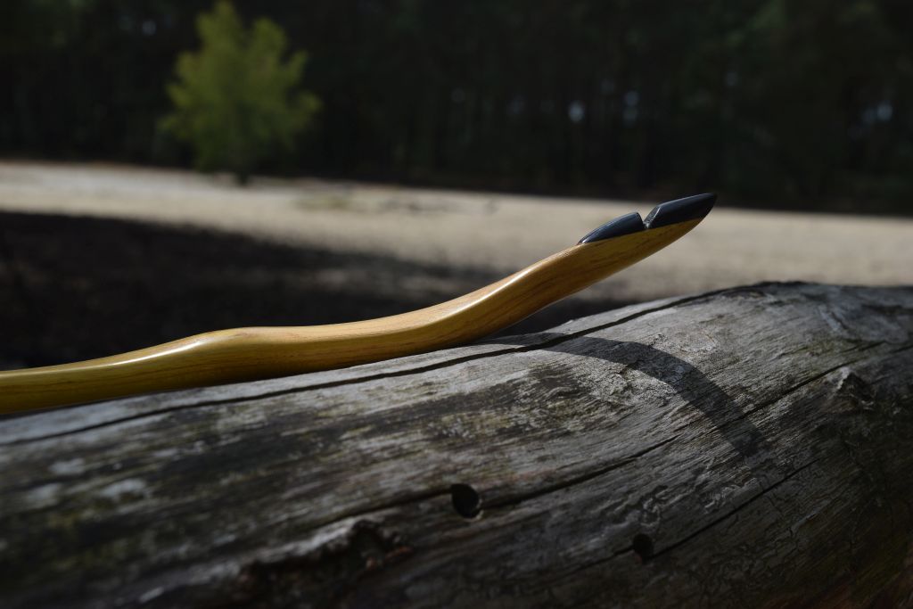Hier ein relativ (für meine Verhältnisse zumindest) kurzer Osage mit mitbiegendem Griff und geflippten Enden. Der Stave war sehr dünn und hatte einige Risse, im Griffbereich habe ich sie leider nicht ganz rausbekommen. Ein, zwei Ästchen hat das Teil auch - ich bin trotzdem immer wieder überrascht, wie schön sich Osage bearbeiten lässt. Bei anderen Hölzern hätte ich vermutlich schon einen Anfall gekriegt. Hat ordentlich Wumms und macht Spaß - auch wenn ich das nächste mal wieder länger bauen werde, finde ich angenehmer beim Schiessen.