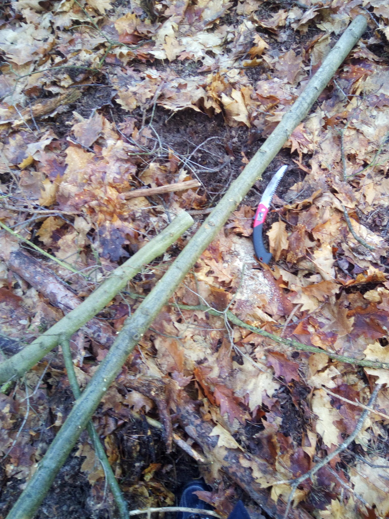 Am späten Neujahrsvormittag konnte ich Roteichen ernten gehen. Die erste war nach dem Absägen unten im Kernholz hohl und faulig. Die zweite war etwas dicker als es zuerst aussah. Also auf zum dritten Kandidaten. Der war ok. Also eine Roteiche eingeladen und auf zum Bogenplatz, wo weitere Kandidaten standen. Ein recht schöner Weißdorn war da, sogar knapp 2m brauchbar, also ab! Ich merkte mir, dass kurz unter dem einen Ast die 2m-Marke ist, drehe mich um und räume die Äste weg usw. drehe mich wieder um und säge kurz unter dem Ast ab. Sch.... wieso ist denn der Rest so kurz??? Riesensch... das Ding hat seitlich einen genauso großen Ast und ich habe unter dem falschen abgesägt... das war mein Weißdornkandidat. Und nein, es lag nicht am Restalk von Silvester. Habe das Reststück von 1,28m Länge aber mitgenommen. Billets werden nicht, da eine Seite fetten Ast hat. Dann über den Platz gewandert und einen zweitklassigen Ahorn als Ersatz mitgenommen. Auf dem Weg zum Auto dachte ich an die Roteichen, wieso war ich so doof, die im Wald liegen zu lassen? Verfeuern kann man sie ja zur Not immer noch. Also doch wieder hingefahren und beim ersten Kandidaten nochmal geschaut. Der obere Teil des Astes ist im Kernholz sogar intakt! Also doch brauchbar. Den dicken Brummer (Durchmesser so 7-8cm) auch eingesackt und ab zum Vorbereiten. Erstmal Versiegelung mit Weißleim, später dann der Versuch des Spaltens. Die dicke Roteiche ließ sich super spalten. Den Weißdorn habe ich testweise auch gespalten, der war eine krasse Schraube. 100° auf 1m Verdrehung. Der wäre also sowieso nichts geworden. Nachdem ich dann alle Stücke begutachtet habe, konnte ich sogar den einen Teil des dicksten Roteichensaplings als Kandidaten küren. Der Ahorn ist dann der zweite. Und ich habe jede Menge Roteiche im Vorrat. Während der Pause fällt mir dann mein Handy aus der Tasche auf den Boden. Keine sichtbaren Schäden, aber es ist kalt und tot.