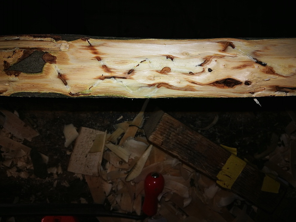 ich hab noch einen Holler im Garten umgeschnitten, als Reserve da die Hainbuche nicht besonders ist und naja leider kein Glück heuer der Holler ist auch nicht so gut, brauner Kern und Ablösungen.