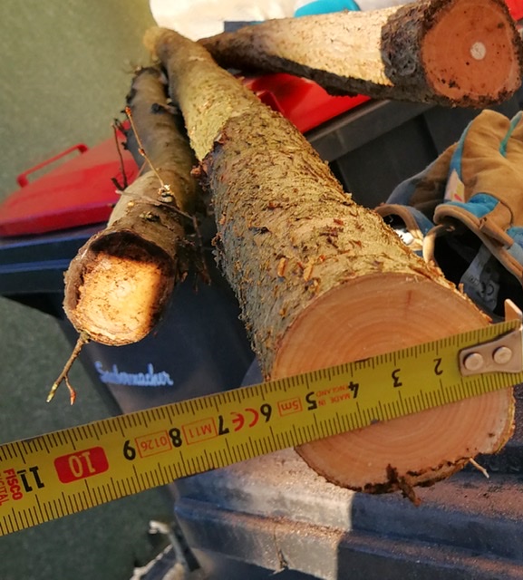 Servus, hab nun auch angefangen und eine Hainbuche und einen Hasel geerntet, die Hainbuche hat nur 3 cm DM und leider ein Käferproblem. Hab aber trotzdem mal die Hainbuche aufgesägt und entrindet und auch den Hasel für ein HaHa.