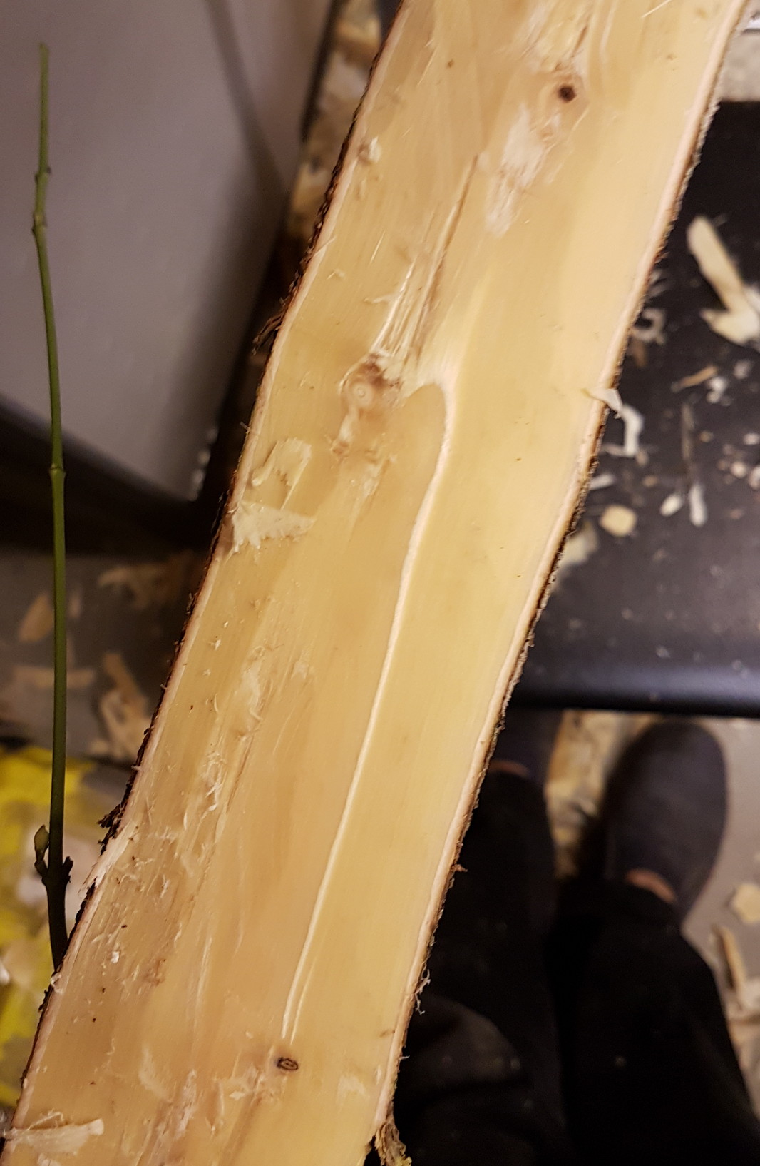 Nach einer guten Stunde war der Mark Kanal endlich frei gelegt, was aber zu einem Großteil an dem starken Drehwuchs gelegen hat. Ich musste ziemlich vorsichtig arbeiten und ständig die Richtung mit dem Ziehmesser ändern dass es nicht zu tief einreist.