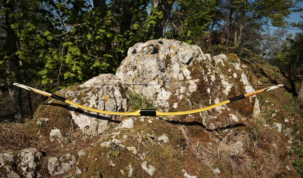 Der Bogen geht an einen Kunden, der bereits einige Bögen von mir bekommen hat. Die Siyahs wurden aus 10 Teilen erstellt und waren sehr aufwendig in der Herstellung. Der Kern wurde aus Kirsche und Wasserbüffelhorn erstellt. Auf beiden Seiten kam dann eine Lage Spitzahorn, darauf wiederum eine Lage aus Goldregen/Wasserbüffelhorn/weißes Rinderhorn. Das wirklich Weiße, was im Rinderhorn zu finden ist, war nicht einmal 1mm dick und lag natürlich nicht gerade im Horn. Es war nicht ganz einfach die weiße Schicht freizulegen. Aber es ist leichter wie Knochen, es war weißer und es hat die Siyahs so versteift, dass ich sie ein wenig leichter ausfallen lassen konnte. Dieser Bogentyp ist sozusagen meine erste eigene Bogenkreation, die ich jetzt in dieser Form anbieten werde.