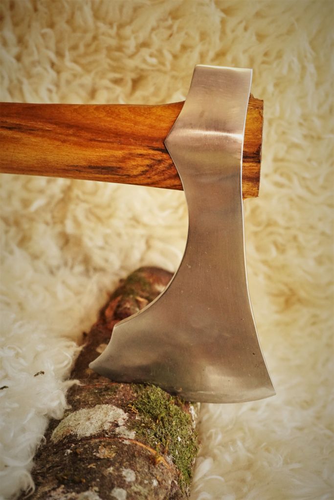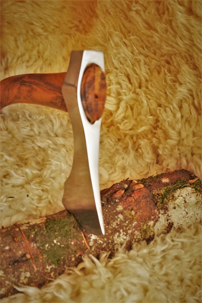 habe schon seit Monaten ein kleines Beil , dass total verrostet und ohne Stiel hier rum lag. Gestern habe ich mich endlich daran gemacht, das Beil zu entrosten und in Form zu bringen. Der Stiel aus einem Rest Goldregen, der zum Teil Kernfäule hatte. Hier das Stück konnte ich zum Stiel verarbeiten. Ich habe es bewusst nicht auf Hochglanz gebracht und nicht alle Macken raus geschliffen... man soll im sein gerbrauchten Zustand schon noch ansehen ;) Der einzige Wehrmutstropfen... beim reinschlagen des Keil ist der Stiel hinten etwas eingerissen, nun ja ist ja mein erster ;D . Die Wikinger Axt ist zum zurichten der Staves im Feld gedacht, wo keine Bandsäge zur hand ist(wie für unser Treffen z.B. ;D ) Sie liegt gut in der Hand ist scharf und vor allem nicht so schwer.