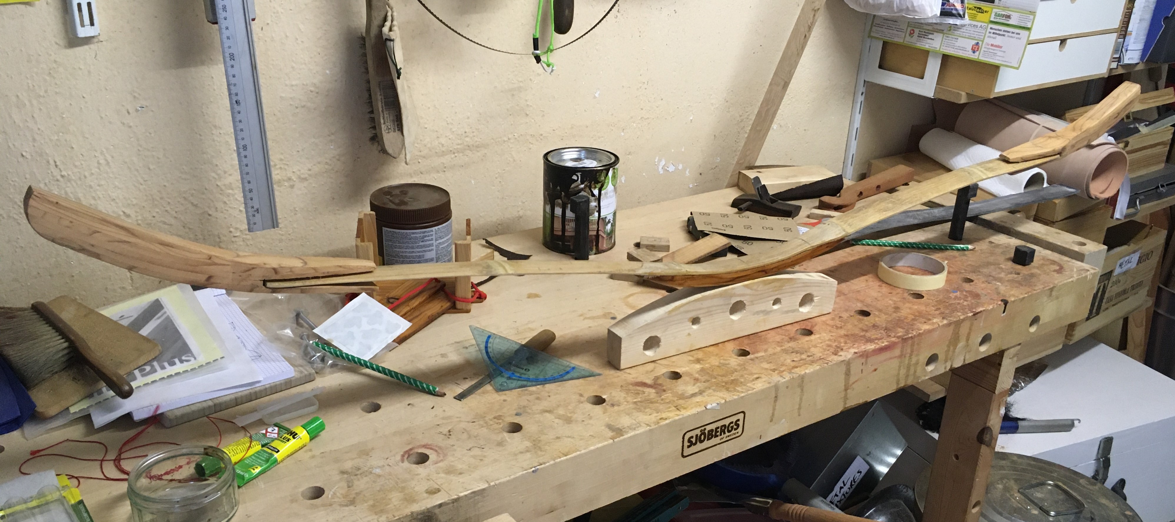 Bis her läuft alles wie beim Holzbogenbau, ein leichter 'propeller' in den Wurfarmen bin ich sanft am beseitigen mit den schabmesser.