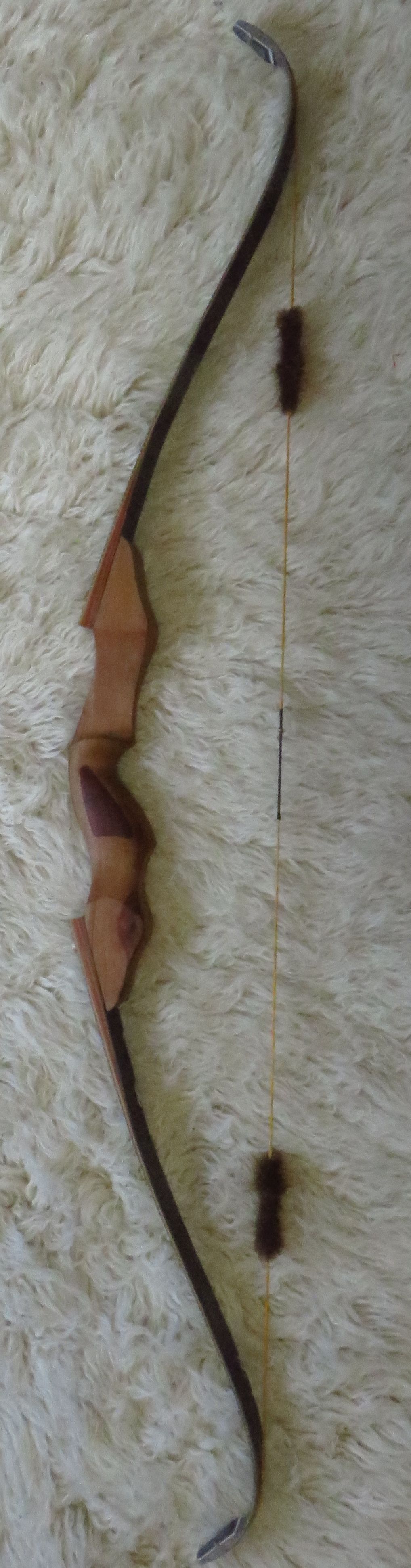 Die erste Ausführung war mit den langen Recurve Enden zu torsionsweich, daher musste ich diese etwas einkürzen. Jetzt hat er 40lbs anstatt den geplanten 30.
