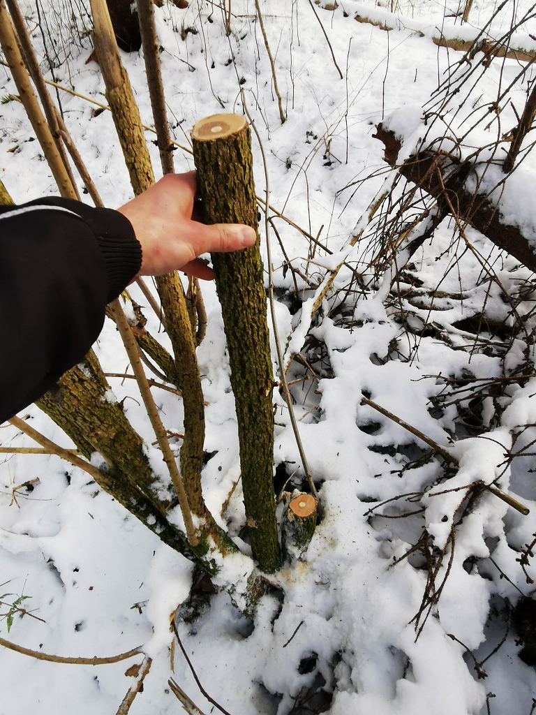 Ich war am 1. Januar im Saplingwald wo ich bisher immer meine Kandidaten fürs Saplingturnier geschnitten habe und dachte mir ich bleibe beim Alten. Habe mir wie letztes Jahr Bergahorn und Hasel geschnitten. Weil ich fern einen sehr dicht gewachsenen Hasel erwischte (mittlerweile fertig gebaut, Präsi kommt noch) und der sich nicht schlecht machte habe ich mich wieder an einer sehr schattigen Stelle umgeschaut und wieder einen erwischt. Dazu lächelten mich zwei kurze Hollerstücke an, sind hier selten lange und gerade. Ich habe gestern einen Dichtetest mit dem Ahorn und dem Hasel gemacht, Hasel hat die Dichte 0.61 und Ahorn 0.55 was wohl für den Hasel spricht.