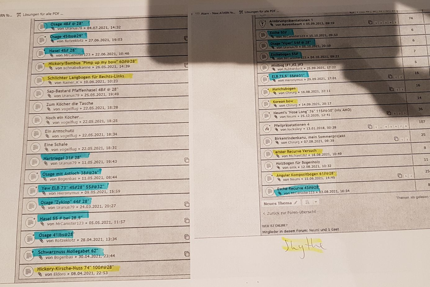Erst mal schauen wann der letzte BdM der jeweiligen Kategorie war, dann prüfen wo sich der erste Bogen rumtreibt und dann die Seiten ausdrucken und Laminierte und Selfbows unterschiedlich markieren. Gut, wenn sich alle Bogen im Präsentationsbereich befinden, was nicht unbedingt selbstverständlich ist (dieses Mal konnte ich mich erinnern, dass da noch einer an anderer Stelle war - schade wenn nicht alle Bogen dabei sind, weil ein Neuling nicht wusste, dass es einen Präsentationsbereich gibt). Dann alle Präsis in einem neuen Fenster öffnen und chronologisch sortieren.