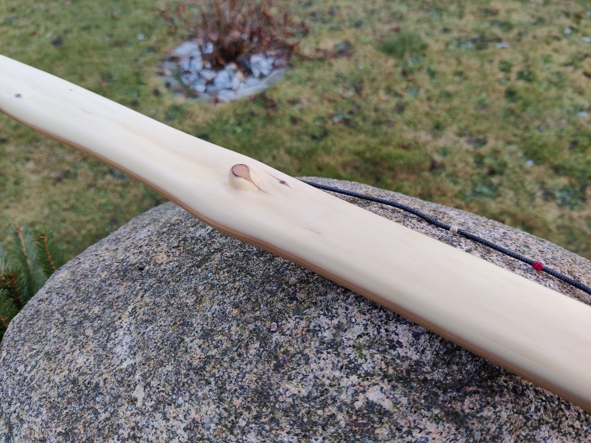 Und wieder ne kleine Präsi meinerseits. Ich hab noch ein paar Bögen daheim liegen, die schon seit längerem auf ein Finish warten. Jetzt hab ich es mir mal zur Aufgabe gemacht die halbfertigen zu vollenden. Und bei dem hatte ich ursprünglich schon nen guten Tiller der beim einschießen leider verloren ging 😕. Allgemein find ich englische Langbögen weder optisch ansprechend, noch sonst irgendwie. Aber ich wollts hald auch mal versucht haben und bin von der Wurfleistung doch überrascht. Ist aber auch mein bisher stärkster Bogen. Mit den klassischen Hornspitzen konnte ich mich so garnicht anfreunden weshalb es bei mir normale Hornoverlays wurden. Den hab ich nach der Anleitung von Blacksmith gebaut. Das Astloch direkt unterm Griff hab ich ausgebohrt und nen Eibedübel eingeschlagen. Und am Bauch ist ein kleiner Bereich leicht ausgehöhlt weil sich ein paar Ringe abgelöst haben. Die Fotos sind jetzt nicht der Hit, aber ich wollte nicht noch länger auf gutes Wetter warten.