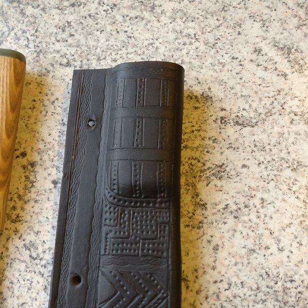 Handgriff: einmal Eiche und der andere Griff aus Eibe. Endkappen und Front des Hangriffs aus Rinderhorn und Bronze