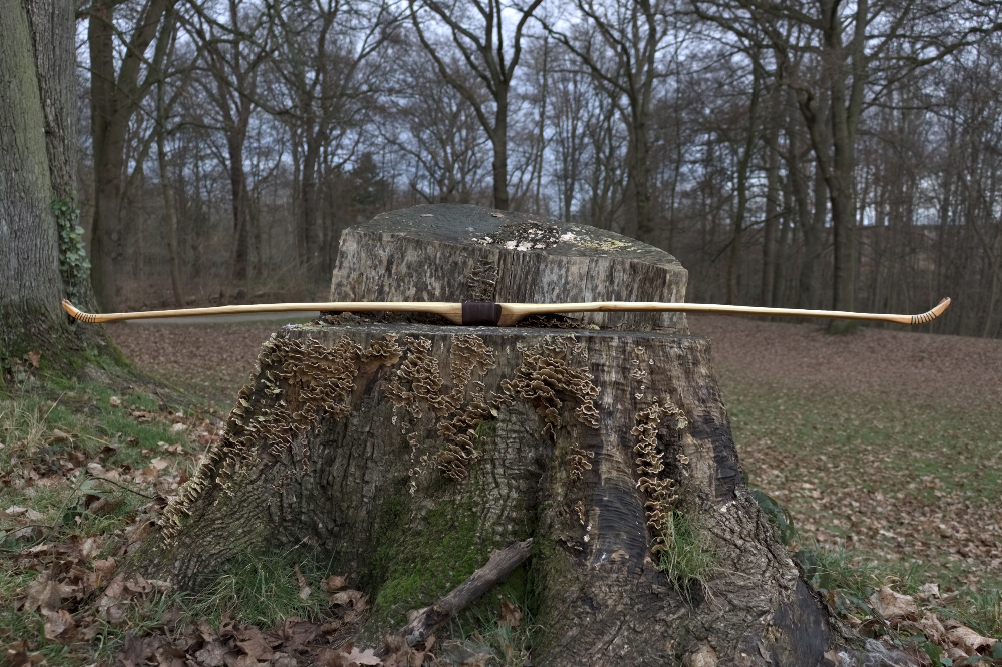 Design komplett aus der Hüfte geschossen: Eibe Flachbogen, kurze steile Recurves, Schussfenster, fast "centershot",