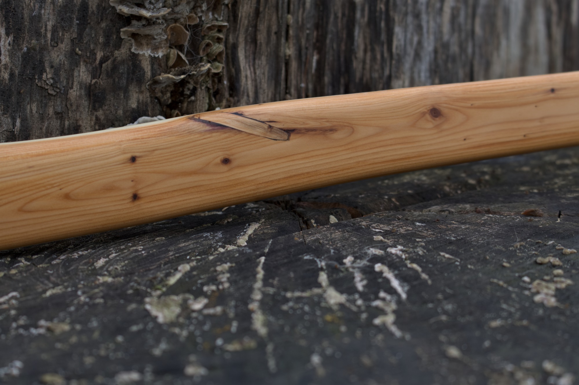 Ich hatte ein Eibenstämmchen gespalten, beim Trockenen hat es sich seitlich verzogen. Der Markakanal wanderte im Holz mal nach rechts und links, dementsprechend wenig homogen verteilt die Qualität im Holz. Fotos hatte ich hier mal reingestellt und mir wurde eher nicht empfohlen daran zu arbeiten: viewtopic.php?f=14&t=32154